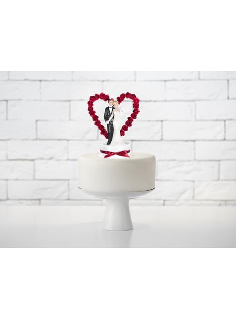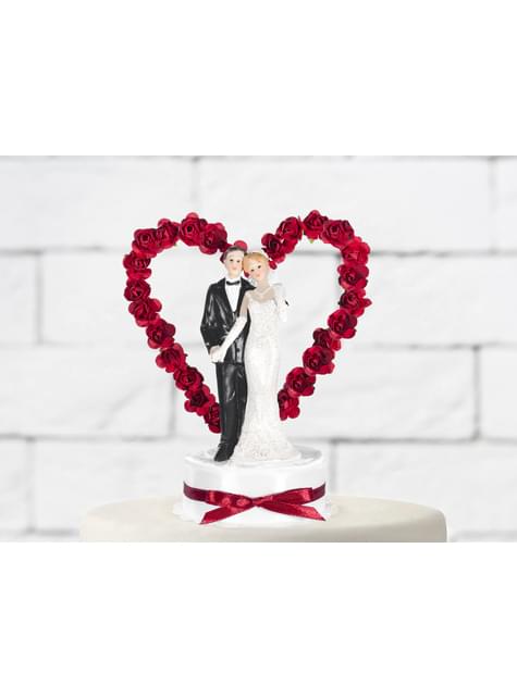 Figura para tarta de boda con corazones y lazo granate