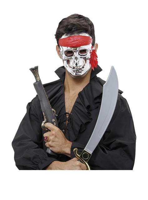 Máscara de calavera pirata plateada